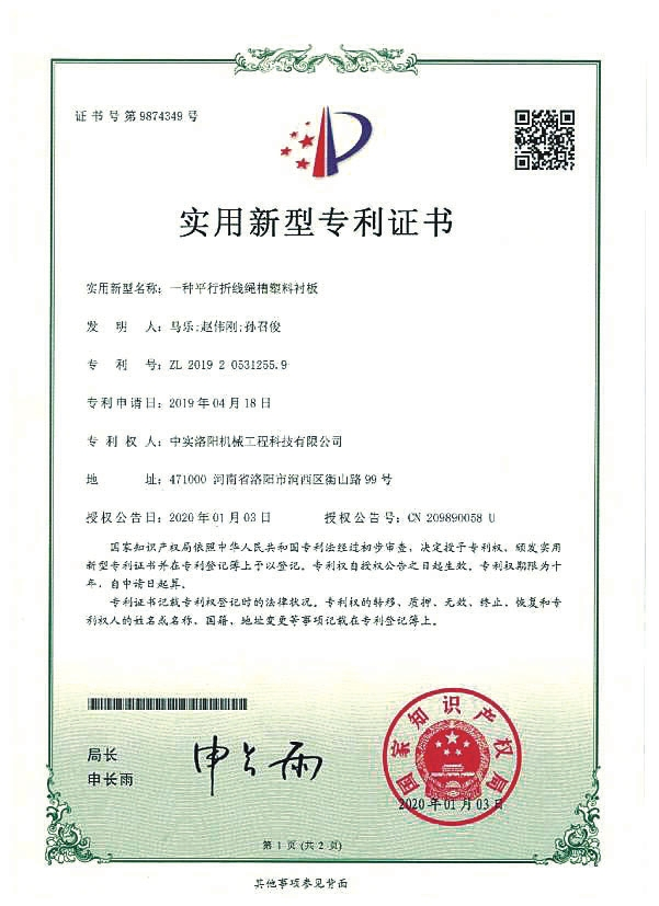 洛陽中實科技公司——平行折線繩槽塑料襯板